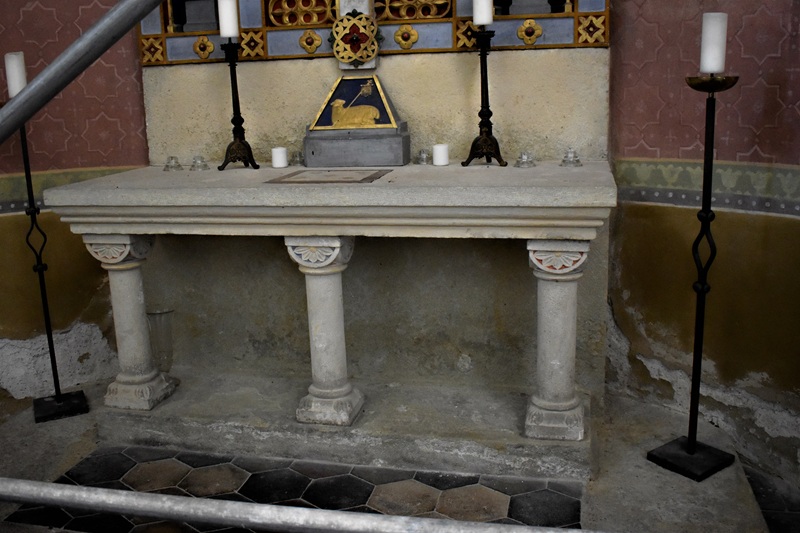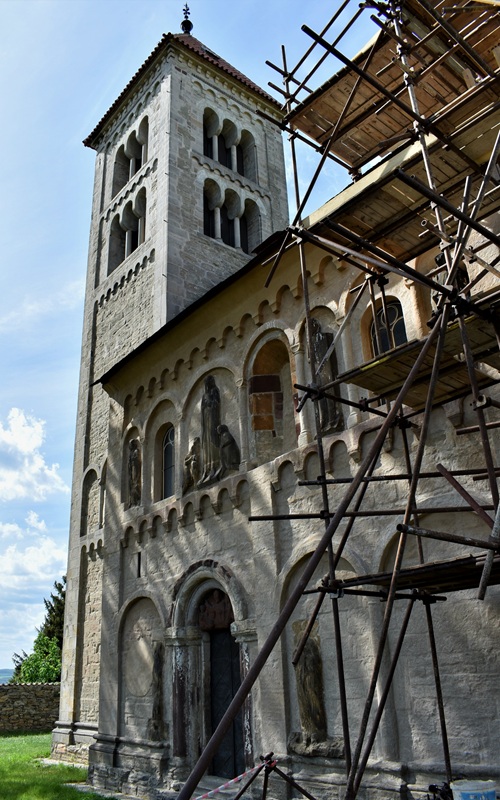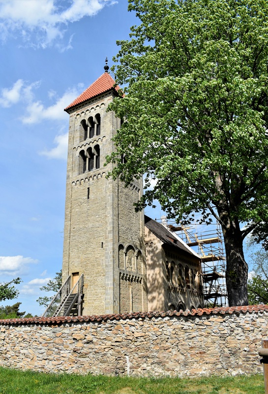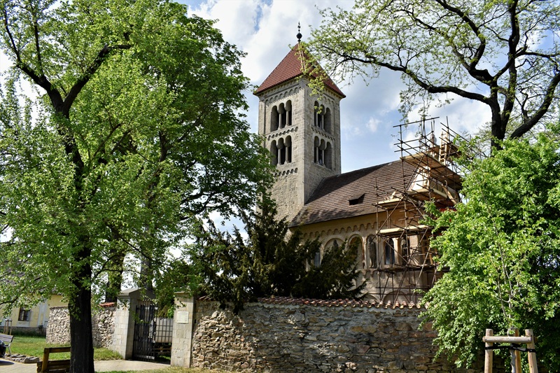 Tie malé fragmenty našich ciest, zážitkov a dotykov dní uložené v plechových krabičkách, sú akýmisi majáčikmi, smerovníkmi, ktoré nás navádzajú k spomienkam uchovaným na štelážach nášho vnútra. Držím medzi prstami zošúverené lístky brečtanu, ktorý ovíjal kamenný múr okolo kostola a cítim ich vôňu….Vlastne už ani neviem, či cestu k nádhernému románskemu kostolu sv. Jakuba sme plánovali vopred, ale určite sme na ceste z Kutnej Hory do Čáslavy odbočili na križovatke doľava. Teraz si spomínam, že v Kutnej Hore sme sa zastavili v Informačnej kancelárii a tam sme našli aj materiál o famóznom kostole v obci Církvice. V severnej časti tejto obce je časť Jakub a veža kostola už zďaleka láka. Kamenný múr, ktorý obieha okolo kostola dáva miestu ešte väčší punc romantična a historickej autenticity. Vlastne uvedomujem si, že v tom turistickom sprievodcovi bolo uvedené aj telefónne číslo pani, ktorá nás mala sprevádzať tými stáročiami v kameni. Čakala nás už pri kovovej bráne vstupu do areálu.