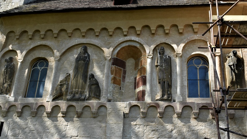 Bohato členená južná fasáda lizénami a oblúčkovými vlysmi a reliéfna figurálna výzdoba slepých arkád je znakom nie len významu kostola tej doby, ale aj vysokej umelecko-kultúrnej úrovne tvorcov. Reliéfy sú pravdepodobne Talianskej a Saskej proveniencie vytvorené mimo územia Česka a prevezené na miesto osadenia, kostola sv. Jakuba v Církviciach. . V 16. a 17. storočí slúžilo okolie kostola ako pohrebisko a náhrobné kamene sú teraz osadené v stenách interiéru kostola.