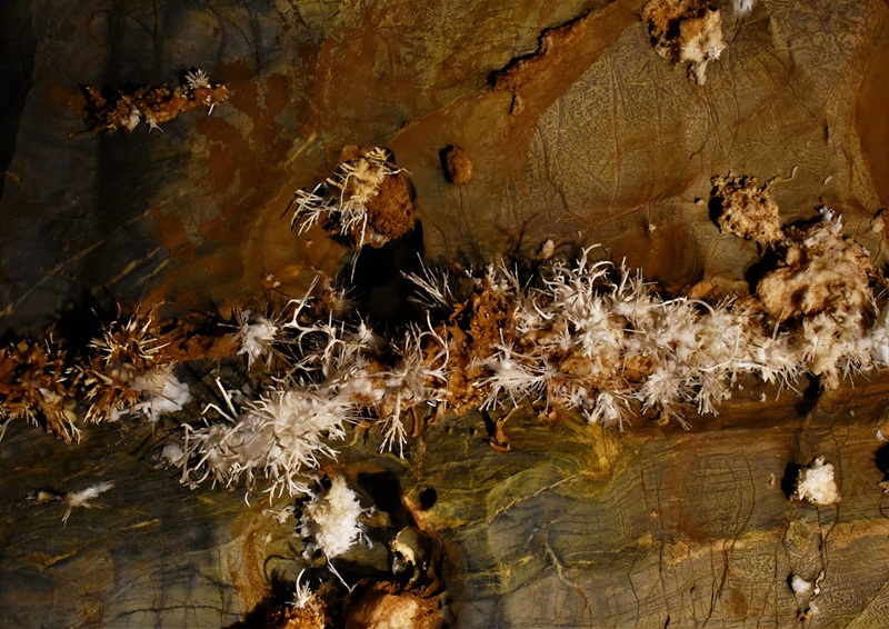 Tieto spomienky sa vo mne prebúdzali pri prechádzaní čarovnými chodbami, sieňami, tunelmi a dómami Ochtinskej aragonitovej jaskyne. Je fascinujúce prechádzať touto galériou v ktorej každý moment je novým prínosom farebných i tvarových kompozícii. Prelínanie valérov červení, žltých, okrov, hnedí, palety tých najúžasnejších kompozícií abstrakcie. Priestorové objekty, ktoré v našom podvedomí vyvolávajú erupciu vizuálnych predstáv spájaných s prebudenými spomienkami z podvedomia. Každý, kto tieto priestory prechádza, vidí svoje vlastné súbory, komplexy, alebo jednotlivé výtvory prírody v stalagmitoch a stalaktitoch, tých najfantastickejších aragonitových tvarových štruktúr a farieb. Špirálové, vejárovité tvary prekrývajú fantazijné kvety, trsy, ihlice, alebo súbory hviezdic. Chýbala mi tam trochu tlmená , alebo až tichá hudba klasika. Bez sprievodcovského slova. Sprievodné slovo nás tak trochu strháva do reality zo snenia. A bez zástupov umenie, alebo krásy chtivých. Ale to by sme si potom museli predstaviť aj Ermitáž , alebo Louvre bez návštevníkov, asi….áno.